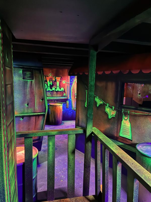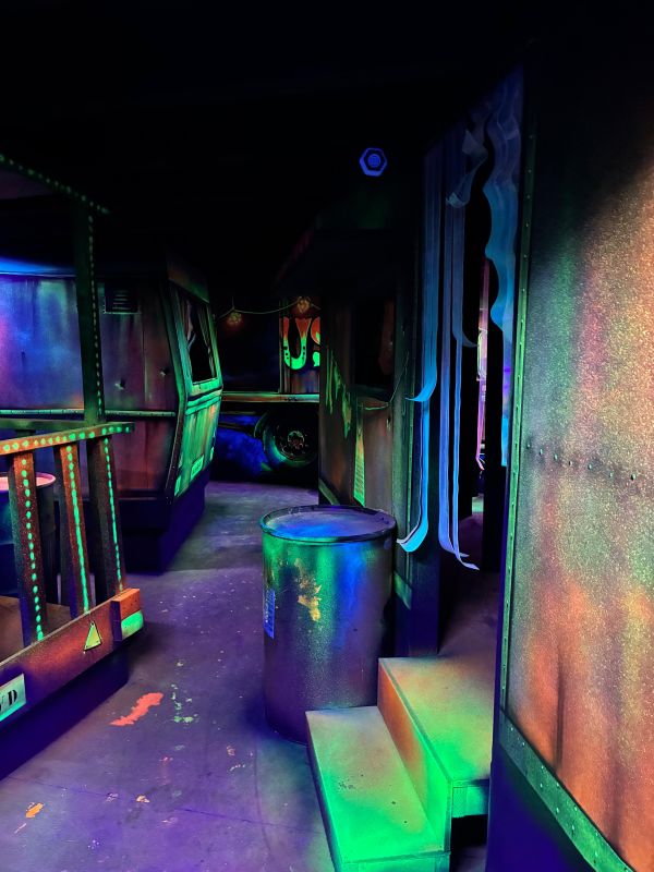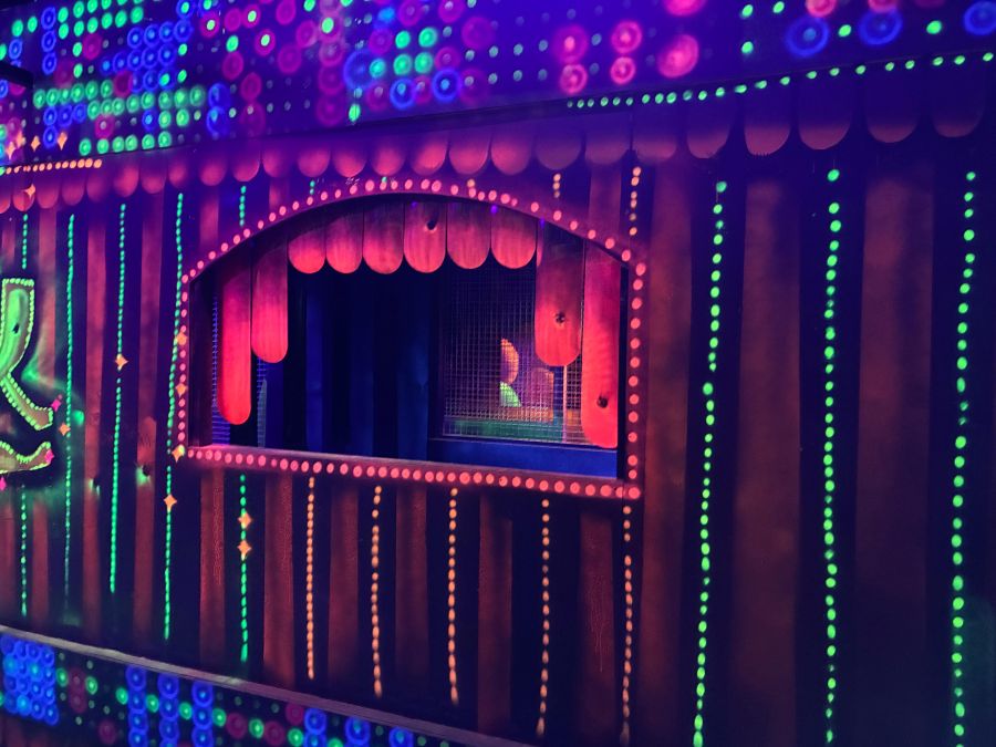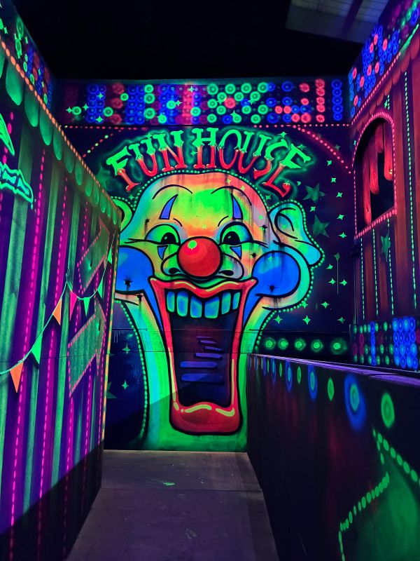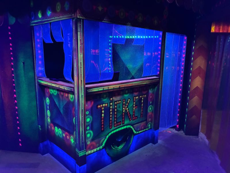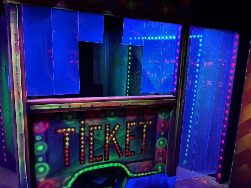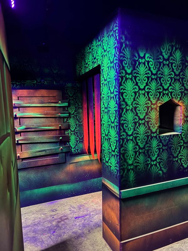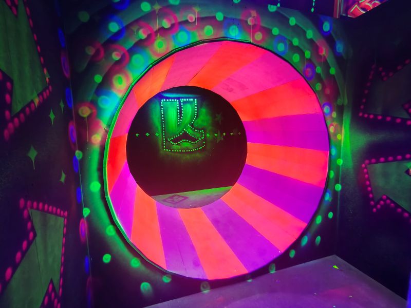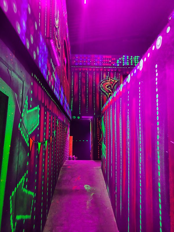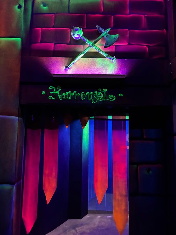 Le centre Karrousel de Versoud, ouvert en Décembre 2025, souhaitait intégrer dans son offre de plus d'une dizaine d'activités une arène laser game entièrement thématisée autour de l’univers forain. Le client a réalisé lui-même la structure du labyrinthe à partir de nos plans détaillés et des recommandations techniques, tandis que notre équipe assurait la direction artistique, l’ensemble du travail décoratif et la fourniture et l'installation des équipements laser. L’objectif : créer une arène à plusieurs univers forts, chacun inspiré d’une attraction ou élément emblématiques des fêtes foraines — palais des glaces, fun house, maison hantée, roulottes.
