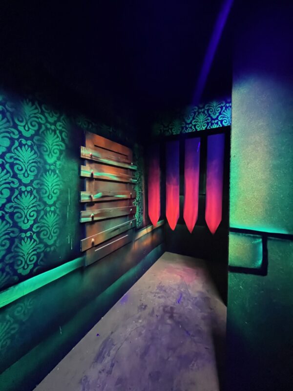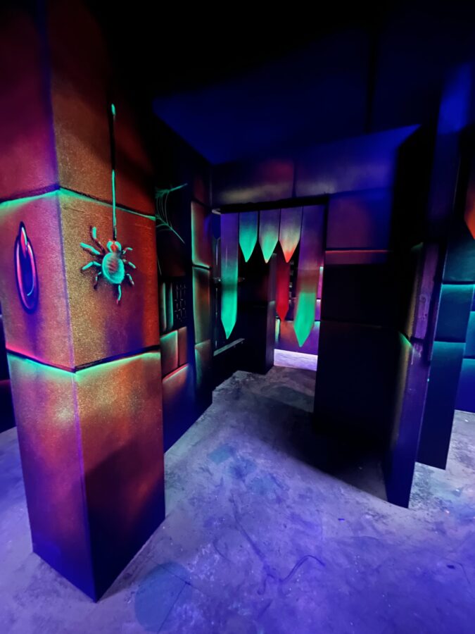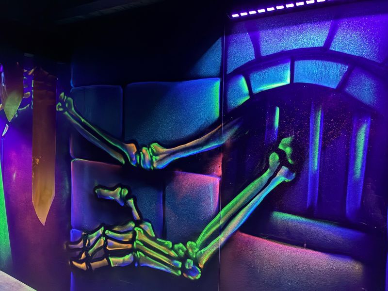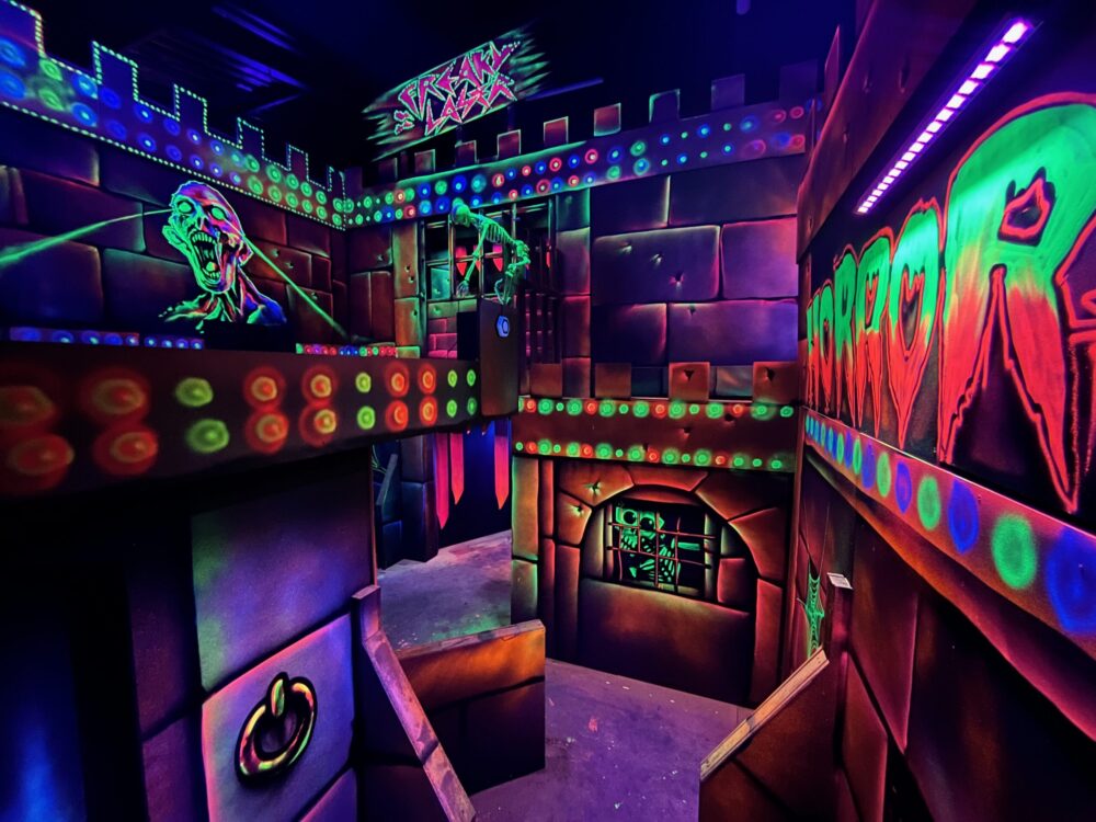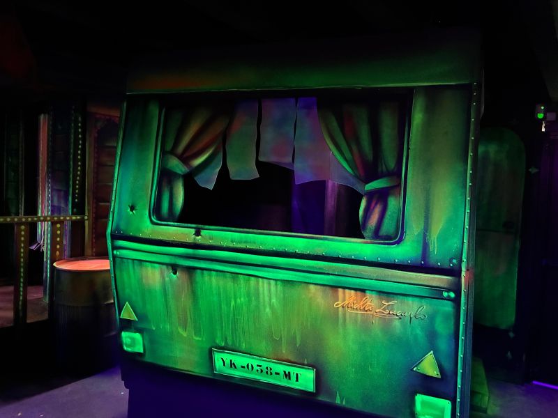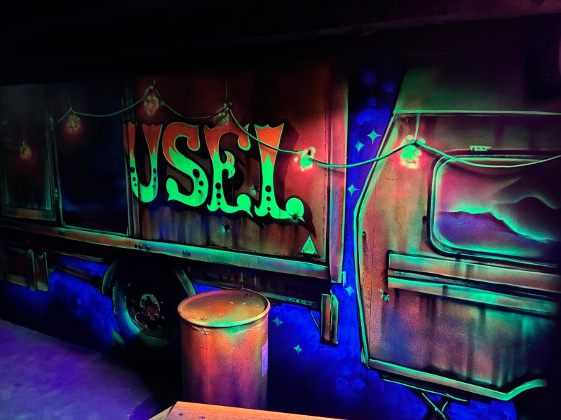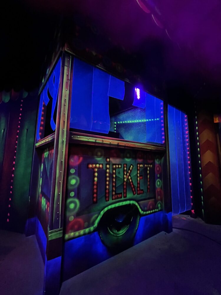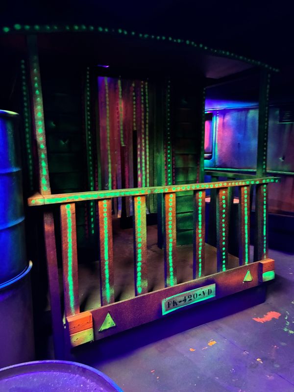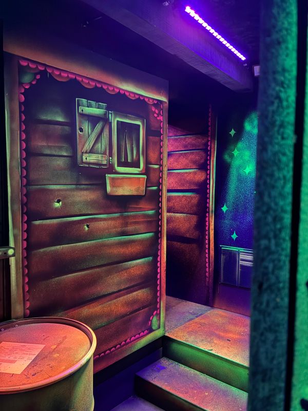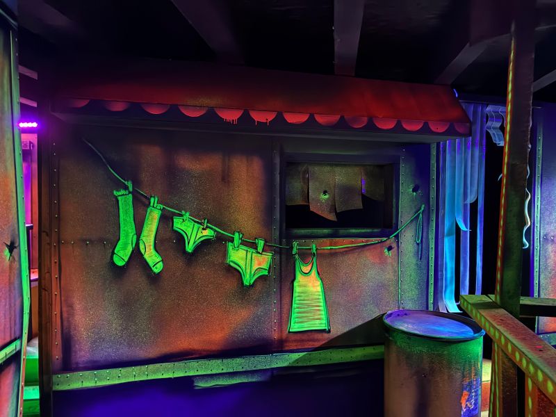 Le centre Karrousel de Versoud, ouvert en Décembre 2025, souhaitait intégrer dans son offre de plus d'une dizaine d'activités une arène laser game entièrement thématisée autour de l’univers forain. Le client a réalisé lui-même la structure du labyrinthe à partir de nos plans détaillés et des recommandations techniques, tandis que notre équipe assurait la direction artistique, l’ensemble du travail décoratif et la fourniture et l'installation des équipements laser. L’objectif : créer une arène à plusieurs univers forts, chacun inspiré d’une attraction ou élément emblématiques des fêtes foraines — palais des glaces, fun house, maison hantée, roulottes.