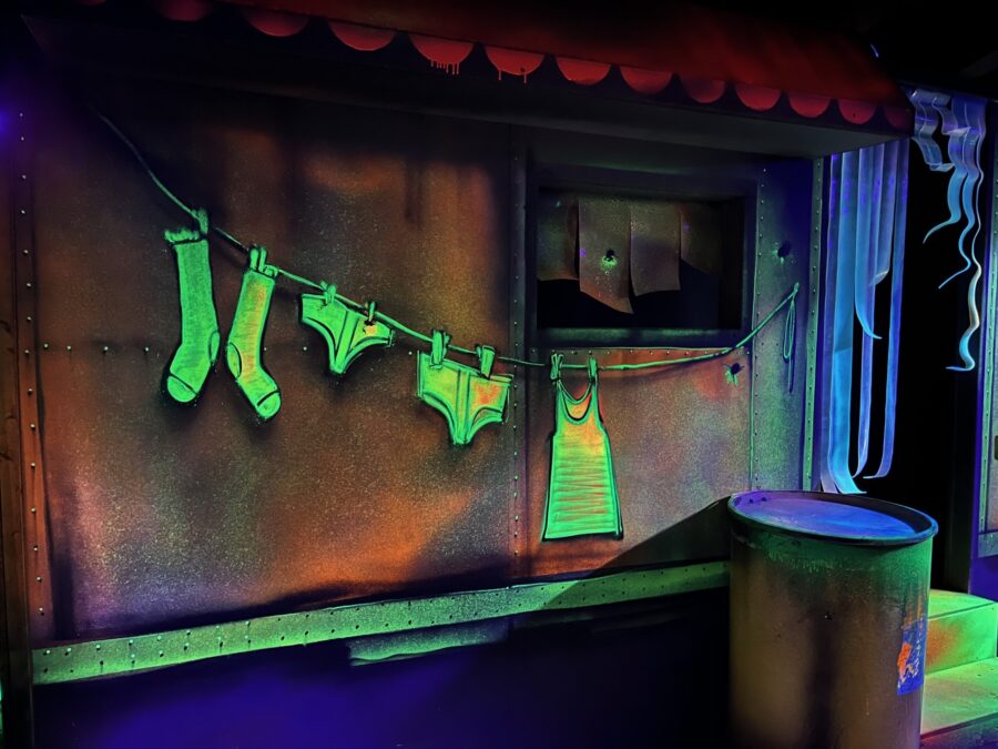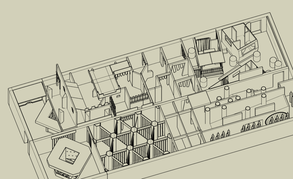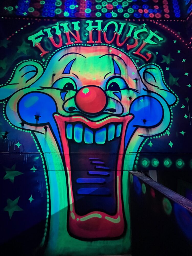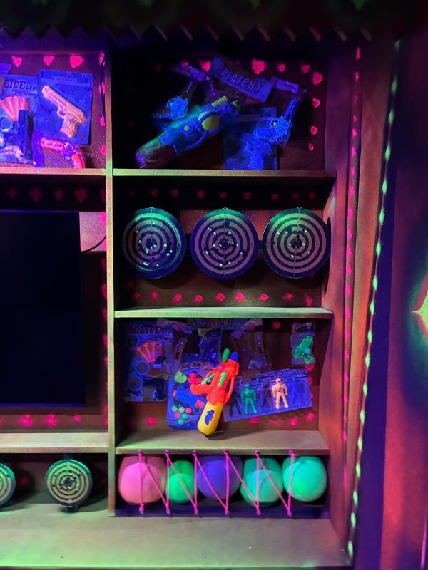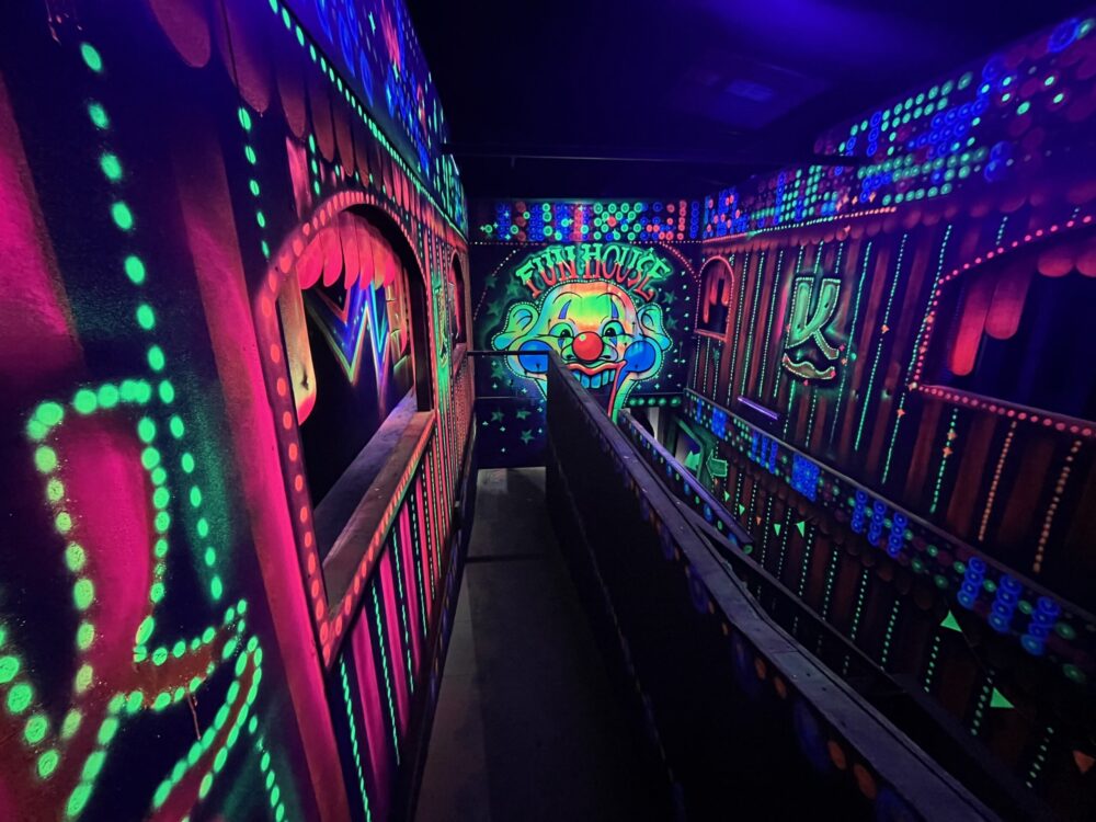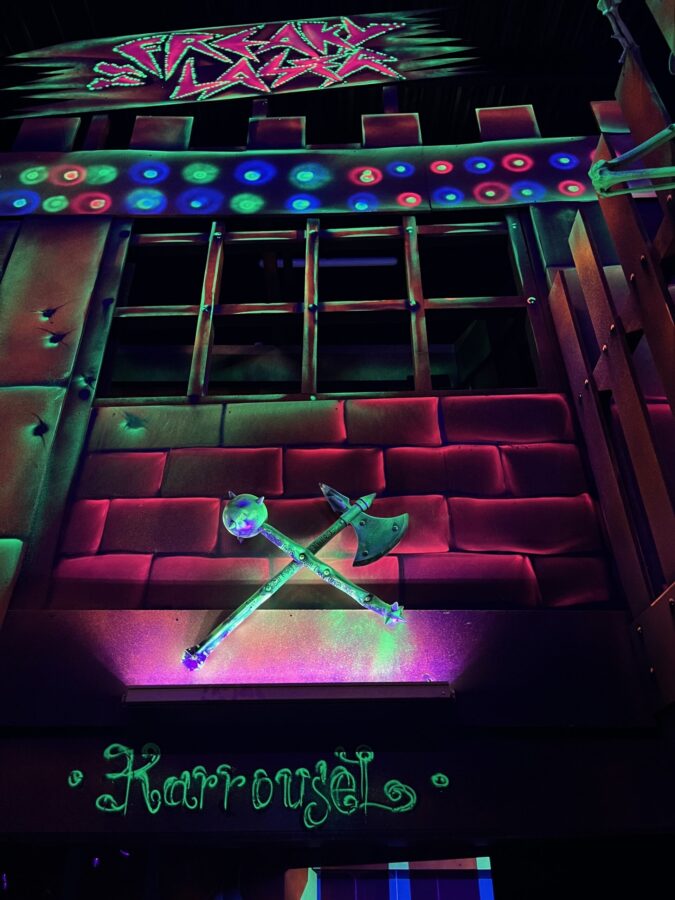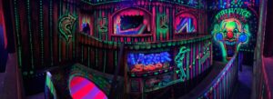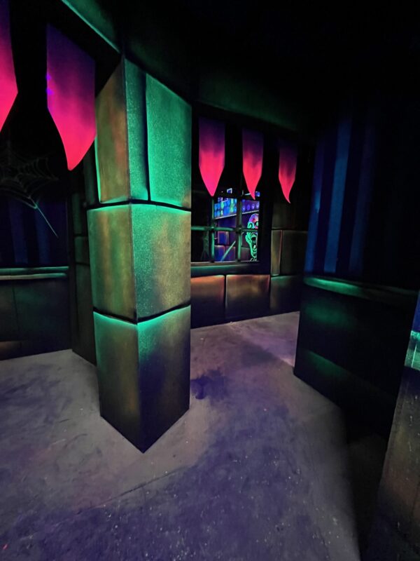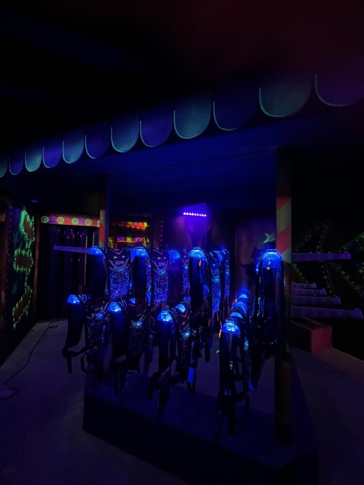 Le centre Karrousel de Versoud, ouvert en Décembre 2025, souhaitait intégrer dans son offre de plus d'une dizaine d'activités une arène laser game entièrement thématisée autour de l’univers forain. Le client a réalisé lui-même la structure du labyrinthe à partir de nos plans détaillés et des recommandations techniques, tandis que notre équipe assurait la direction artistique, l’ensemble du travail décoratif et la fourniture et l'installation des équipements laser. L’objectif : créer une arène à plusieurs univers forts, chacun inspiré d’une attraction ou élément emblématiques des fêtes foraines — palais des glaces, fun house, maison hantée, roulottes.