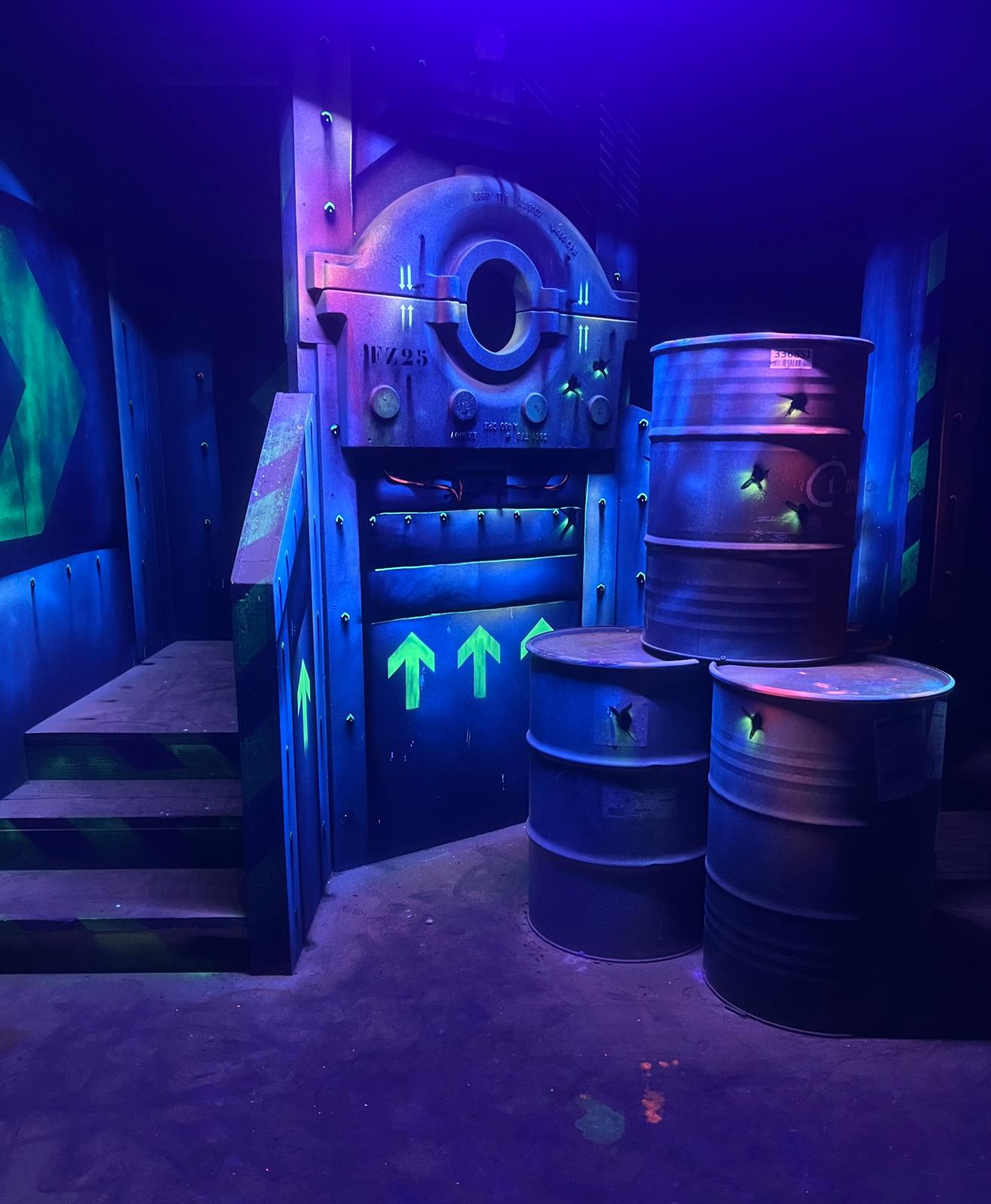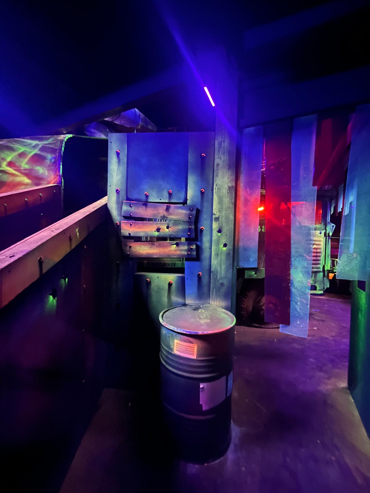 Dès le départ, l’équipe nous a confié deux éléments forts autour desquels structurer le futur labyrinthe : un avion et un camion militaire. Le thème s’est donc naturellement orienté vers une ambiance zone militaire, proche des parcours d’airsoft et de paintball, tout en conservant une structure dense indispensable à un laser game. En effet, des zones trop ouvertes conduisent à des parties rageantes, avec des désactivations trop fréquentes. Notre intention fut donc de créer un environnement immersif, sans sacrifier la jouabilité.