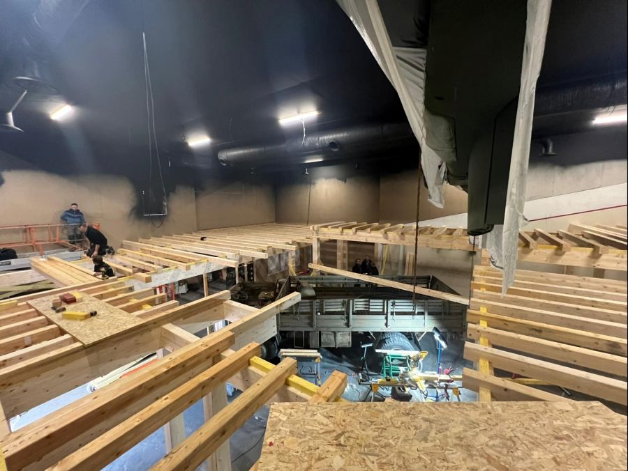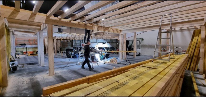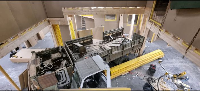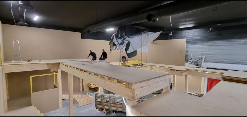 Passerelles, escalier intégré au camion, zones surélevées sur la mezzanine, trois accès à l’étage : toute la structure a été pensée pour optimiser les trajets de jeu et offrir une circulation intuitive. Quatre semaines ont été nécessaires pour l’ensemble de la construction: l'élevation de la mezzanine, la création du briefing / airlock, fabrication des plateformes, installation des obstacles, mise en place des accès.